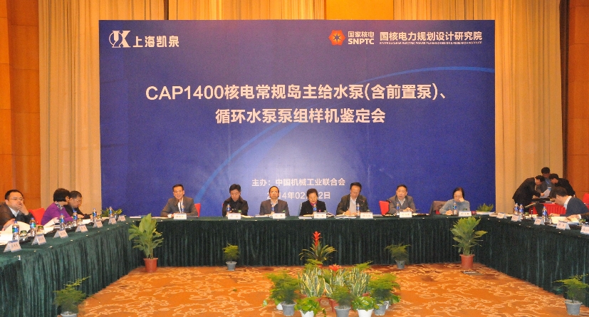 | 2014年2月22日,受國家能源局委托,中國機械工業(yè)聯(lián)合會在上海組織召開了由上海凱泉泵業(yè)(集團)有限公司和國核電力規(guī)劃設計研究院聯(lián)合研發(fā)的CAP1400/ACP1000核電常規(guī)島MFP3630型主給水泵、循環(huán)水泵泵組樣機鑒定會。與會專家聽取了研制單位所作的試制總結報告,審閱了相關文件資料,查看了生產(chǎn)和試驗運行現(xiàn)場并見證了機組熱態(tài)全速聯(lián)調試驗。得到了令人欣喜的鑒定結果,該兩種樣機技術性能指標達到國際先進水平,順利通過評審鑒定。 |